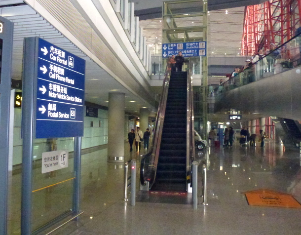 整个航站楼都有这样的标志,您只需按标志指示走。