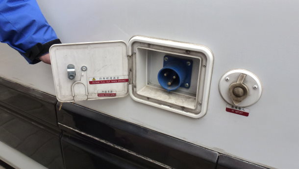 刘先生向我们介绍所有的钥匙孔和所有的连接。我们大概用不上这么多除了要知道柴油箱。
