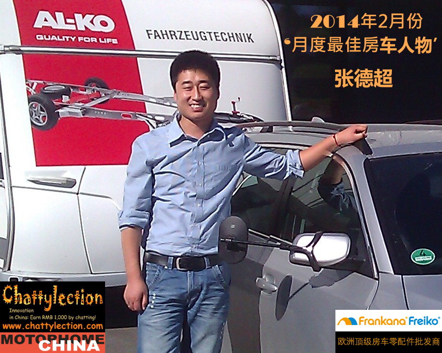 来自德国AL-KO在华全资子公司的张德超,是我们2014年2月份聊房车赢大奖活动的获奖者,被评为“月度最佳房车人物”!恭喜他!