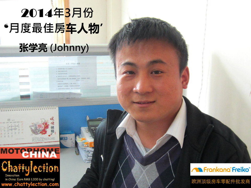 Johnny有着丰富的房车专业知识,了解国际国内市场行情。 本月在此活动中表现突出,评为本月“房车人物.