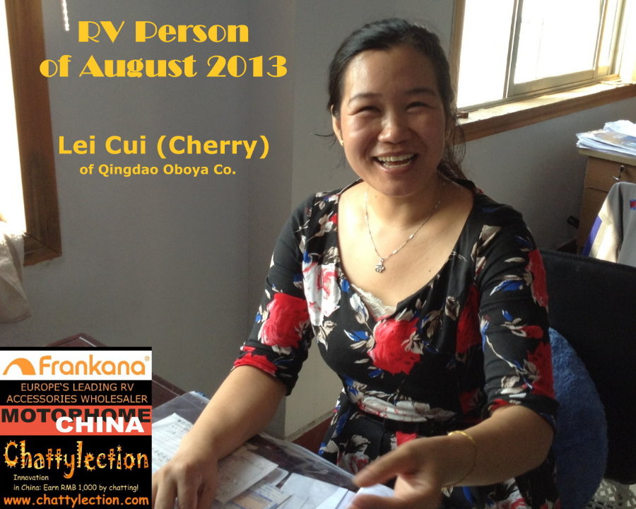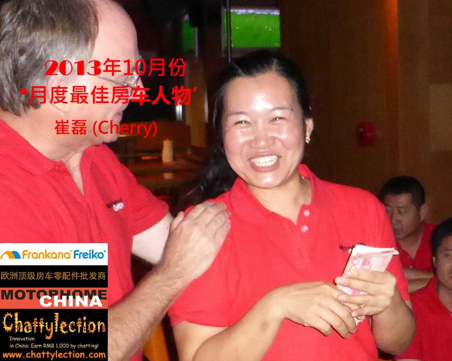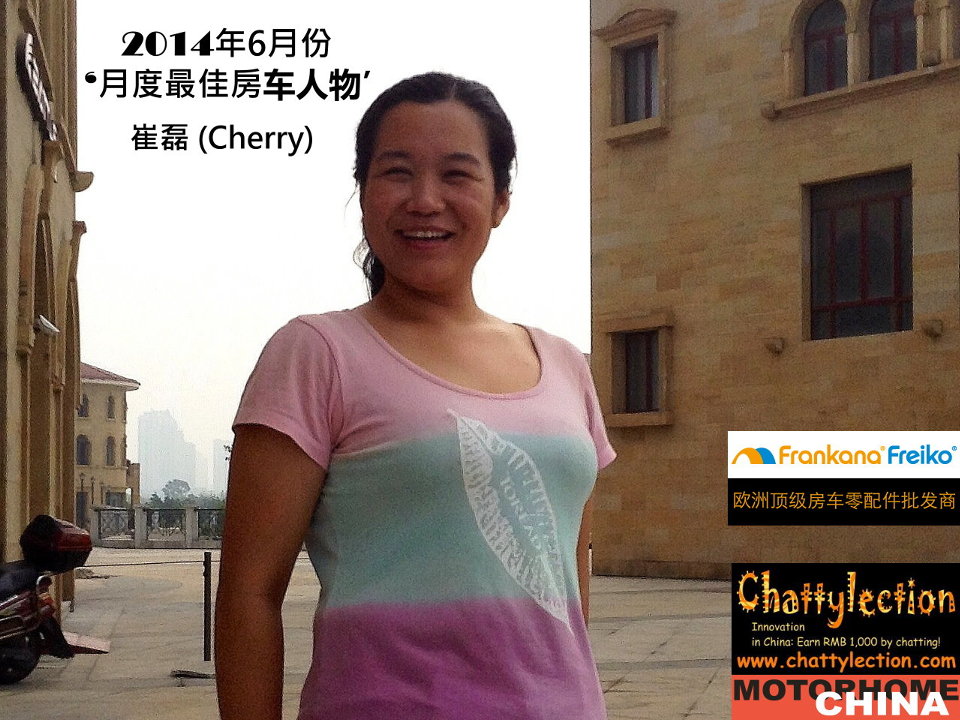 Cherry来自青岛欧勃亚公司,她也是我们“聊房车赢大奖活动”开展以来,第1位赢得两次奖金的参赛者。恭喜Cherry!!
