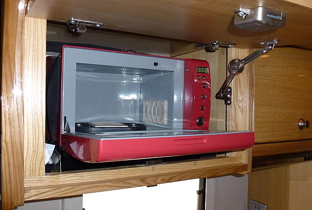 橱柜上有个小的微波炉,非常豪华但是取决于电力供应。
