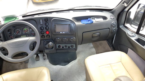 驾驶员座椅和仪表盘都是常规多功能车的风格,只有数码显示屏和GPS提供一个豪华的触摸功能。