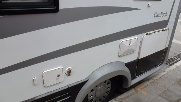 背面不仅是一个可以折叠的梯子,还有一个后视摄像头,在中国租赁房车有些东西我们没有预计到。